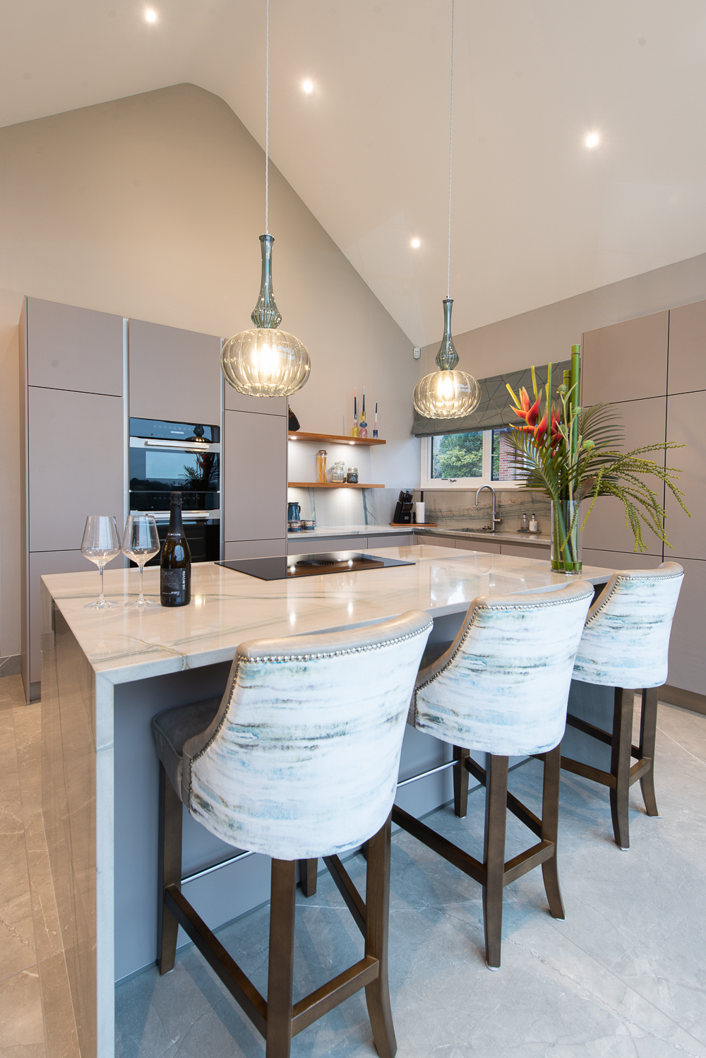 Experience luxury living in this stunning newly redecorated penthouse overlooking a Belfast golf course. The open-plan kitchen, living, and dining area is anchored by an elegant waterfall kitchen island that beautifully integrates calming blue and grey tones. Vaulted ceilings and expansive windows flood the space with natural light, offering breathtaking views and a sophisticated, airy ambiance. This is modern elegance at its finest.