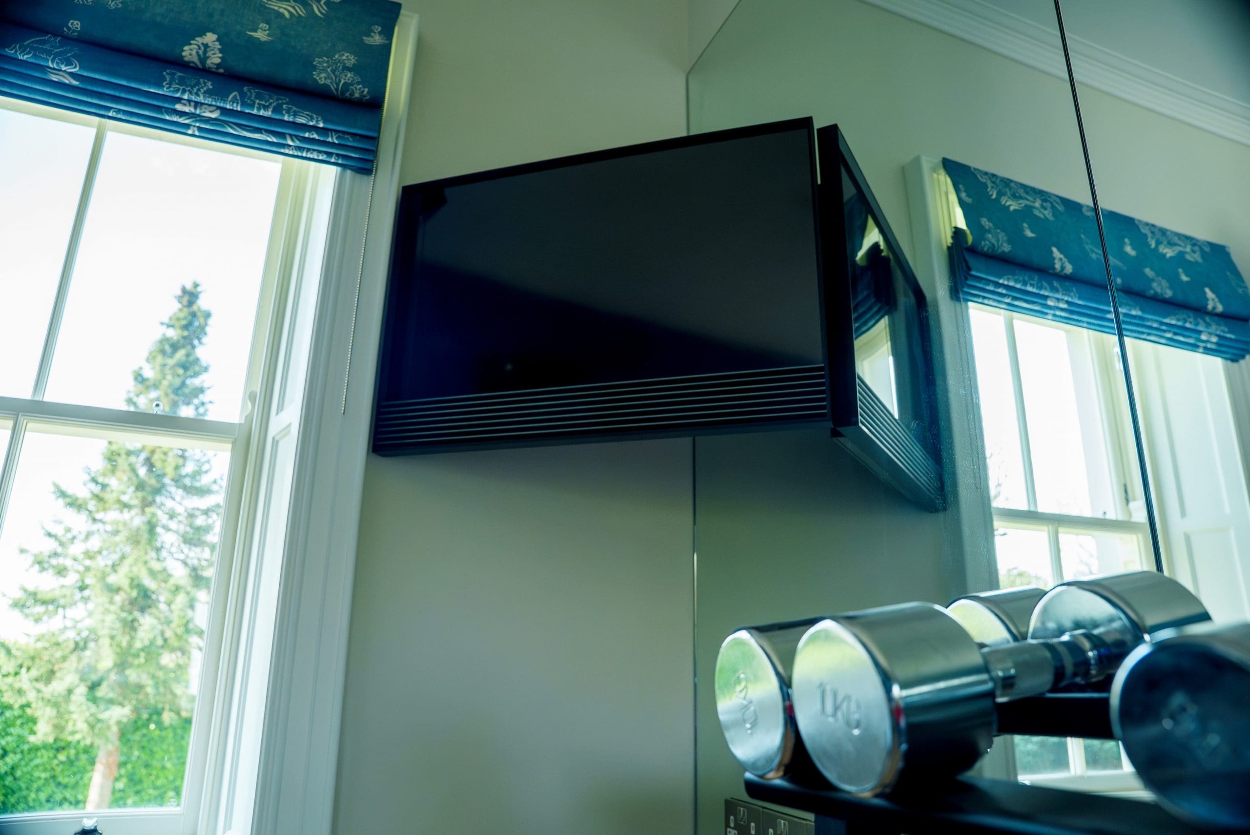 In addition to the AV setup, the home was enhanced with Lutron lighting control and Silent Gliss motorised window treatments. The blinds seamlessly integrate with the Lutron system and are controlled via the same SeeTouch keypads used for lighting. All six blinds drop in perfect synchrony at the touch of a single button, blending functionality with refined elegance. - Gym Entertainment