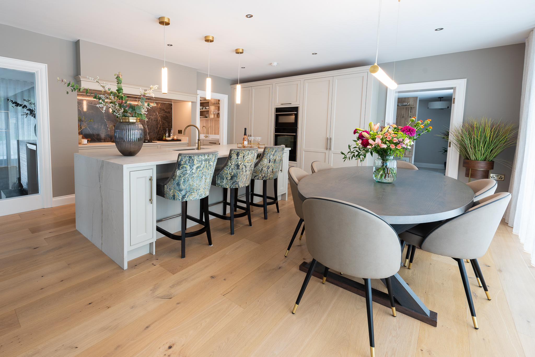 Experience the epitome of luxury in this breathtaking, newly-built 4-bedroom residence in Belfast. Showcasing the entry hall, a formal living room, dining room, WC, and a casual kitchen/dining with adjacent living to seamlessly blend cooking, socialising and relaxation. With its sleek surfaces, modern appliances, and abundance of natural light, this area is perfect for everyday living. The formal living room is the perfect space to entertain guests, with its elegant design and sophisticated ambiance. Whilst in the formal dining room rich textures and opulent tones create a moody atmosphere that’s sure to impress.