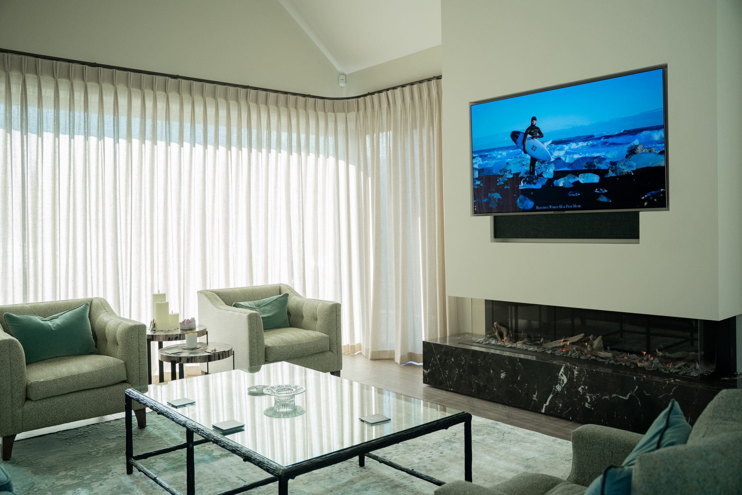 In other rooms, the client opted for the BeoSound Stage, a slim, powerful soundbar with Dolby Atmos for immersive sound, without the need for additional speakers. It’s perfect for wall mounting or recessing into custom joinery, and also doubles as a premium music speaker with AirPlay and Chromecast built in.